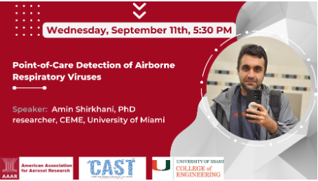 - Mock AAAR Presentation Series: The mock presenstation series was an opportunity designed to help students prepare for their presentations at the upcoming AAAR 42nd Annual Conference in Albuquerque, New Mexico. The first presenter was Amin Shirkhani, PhD candidate from Department of Chemical, Environmental, and Materials Engineering.
