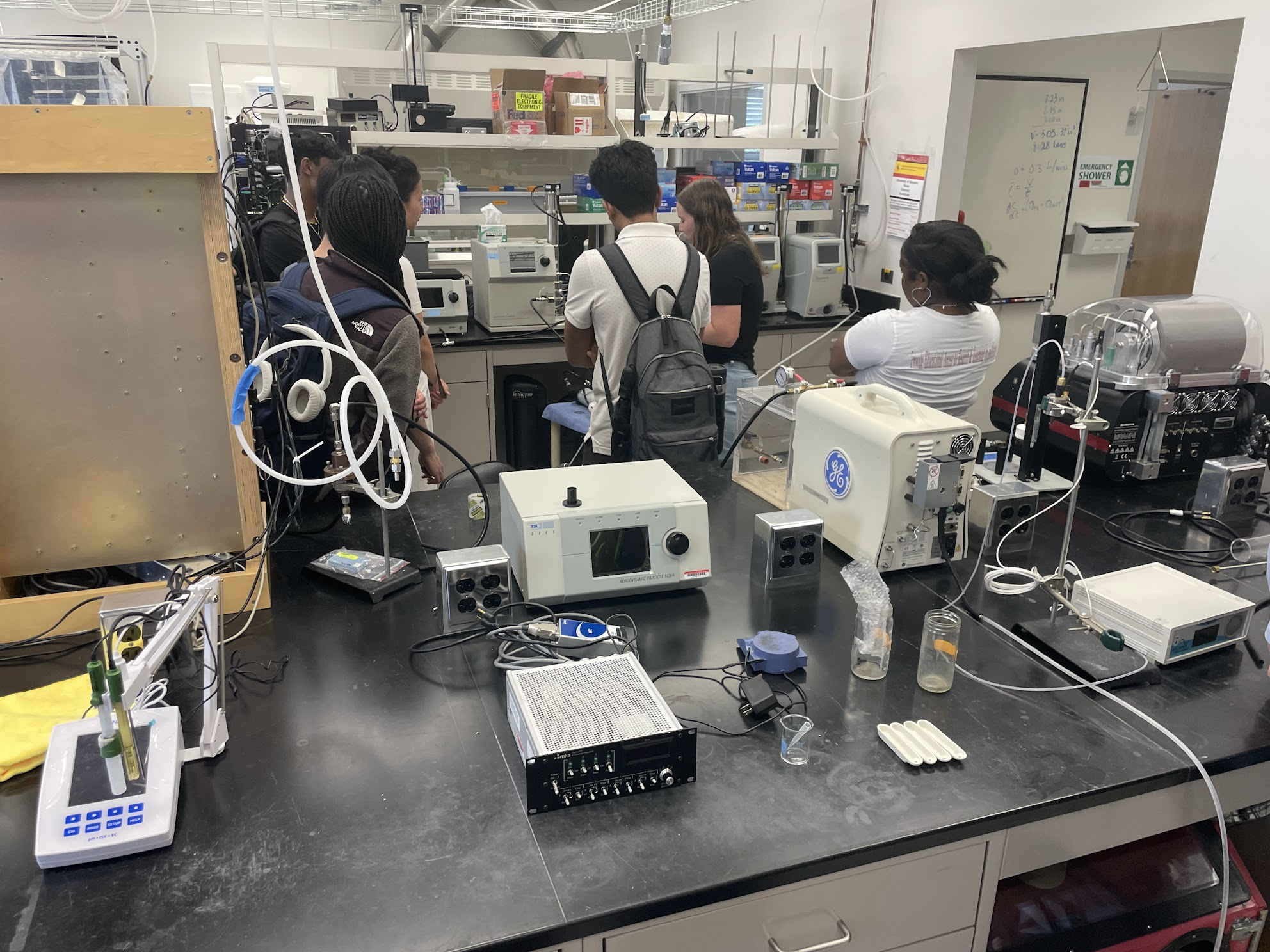 In addition, members volunteered with students exploring careers in engineering, hosting lab tours in the Environmental Aerosol Research Lab with Dr. Akua Asa-Awuku. During the tours members demonstrated the operation of Condensation Particle Counters (CPCs), including a visual demonstration of aerosol light scattering. We are also proud to celebrate the achievements of our members: former chapter president and vice president, Dr. Nahin Ferdous-Rokib and Dr. Esther Olonimoyo, successfully defended their dissertations in the Spring and Fall semesters, and other members advanced to candidacy, including Martin and Steph. We wish them success in their future endeavors.